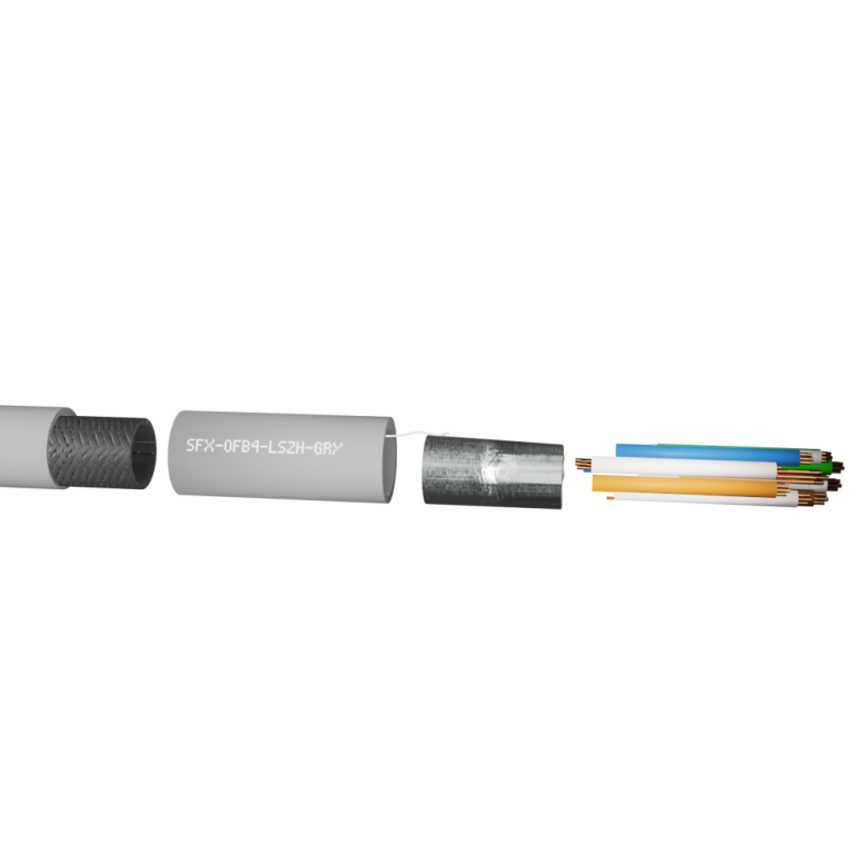 1m (per metre) OFB4 4pr 24AWG Overall Foil and Braid Screen 600V Grey LSZH (9844) CPR:Eca