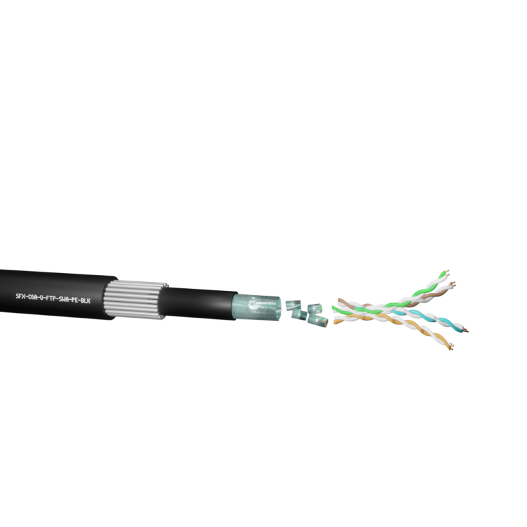 500m Category 6A, 4pr U/FTP SWA Black PE CPR:Fca