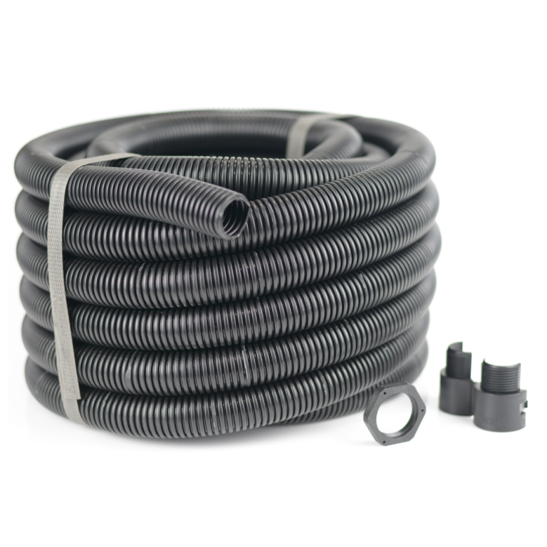 PVC Corrugated Conduit Pack 10m Conduit with 10 Split Glands M25 Black Each