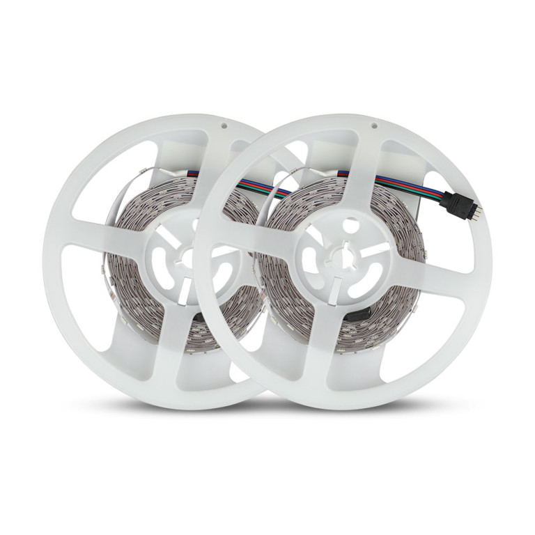 The V-TAC 300 4.8W/M LED Strip Light Set (BS Plug) IP20 (2X5M Roll) RGB is a high-quality solution engineered for reliability and long-term performance. Featuring a white finish, it offers a versatile aesthetic suitable for various modern environments. Suitable for illuminating borders, edges, cabinets, bars and areas with limited space for installation.
