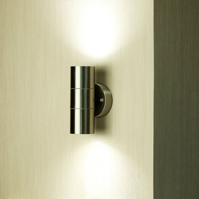 The V-TAC 2 Way GU10 Up-down Wall Fitting, stainless Steel Body- IP44 is a high-quality solution engineered for reliability and long-term performance. Featuring a silver finish, it offers a versatile aesthetic suitable for various modern environments. Suitable for pathways, stairways, corridors, walkways etc.