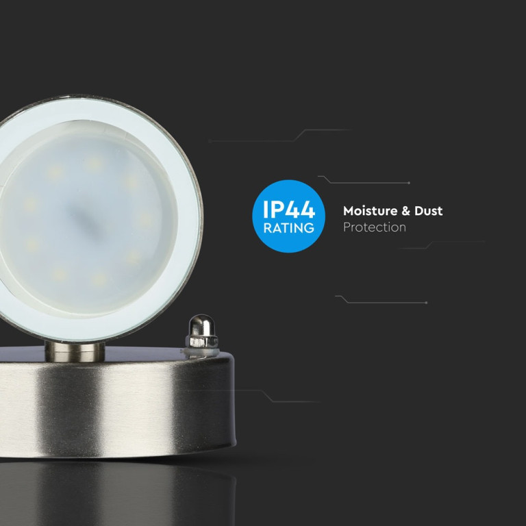 The V-TAC 1 Way GU10 Wall Fitting, stainless Steel Body- IP44 is a high-quality solution engineered for reliability and long-term performance. Featuring a silver finish, it offers a versatile aesthetic suitable for various modern environments. Suitable for pathways, stairways, corridors, walkways etc.