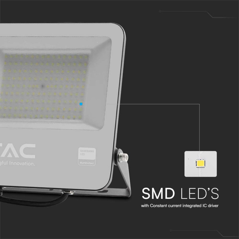 V-TAC 300W SMD Floodlight Samsung Chip 1M Wire 6500K Black Body Grey Glass 135LM/W